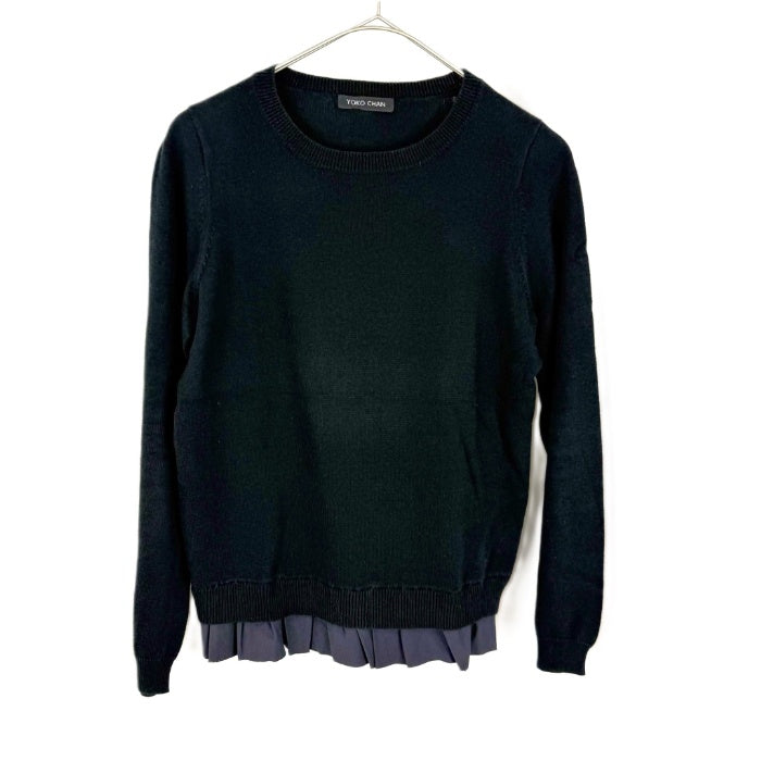 【中古】ヨーコチャン YOKO CHAN クルーネックニット 裾フリル 切り替え ブラック ネイビー 黒 紺 i0703n02410