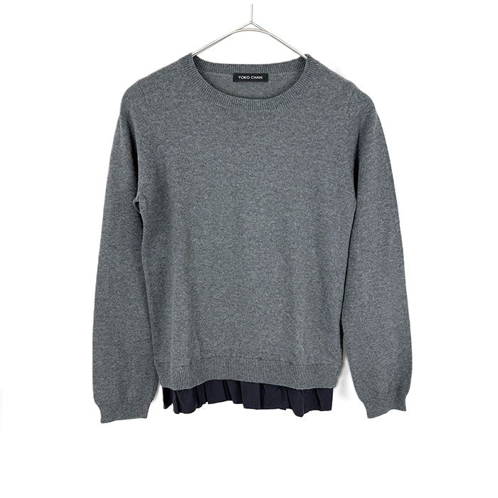 【中古】ヨーコチャン YOKO CHAN クルーネックニット 裾フリル 切り替え グレー ネイビー 紺 i0703n02312