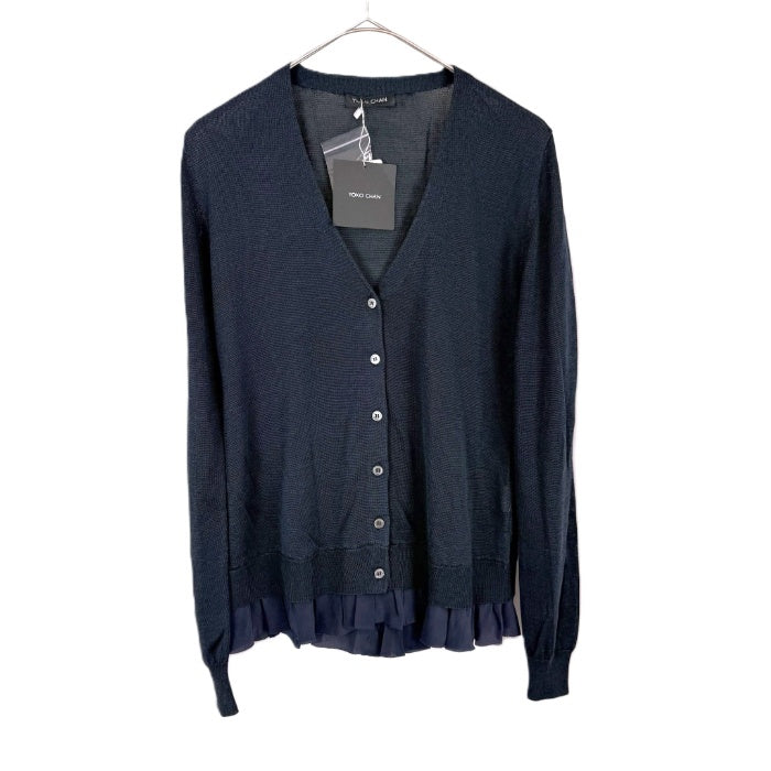 【中古】ヨーコチャン YOKO CHAN カーディガン 裾フリル Vネック シルク 未使用 ネイビー 紺 i0703n02218