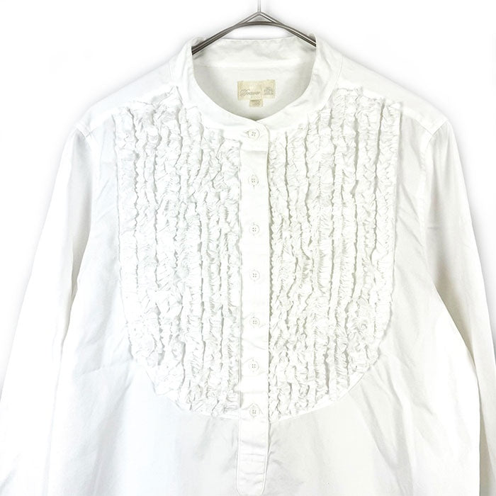 【中古】ドゥロワー Drawer ビエラフロントフリルブラウス スタンドカラー プルオーバー ホワイト 白 h1126k01217