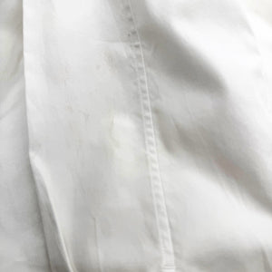 フロントフリルが可愛い上品なシルエットのブラウスです。 胸元にうっすら黄ばみ、背中に薄しシ、袖に汚れがあります。傷みはなくまだまだご着用いただけるお品物です。