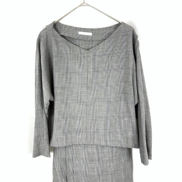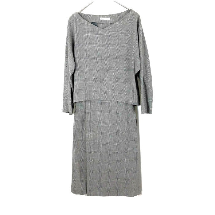 【中古】ギャルリーヴィー GALERIE VIE グレンチェックワンピース セパレート風 ウール グレー系 h1227n0194