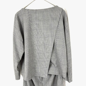 セパレート風デザインのおしゃれなグレンチェックワンピースです。前身頃のみ繋がったデザイン。 スカートのウエスト後ろ側はゴムになっていて穿きやすいです。 うっすら毛羽立ちはありますが、気になる汚れはなく全体的に状態の良い綺麗なお品物です。
