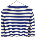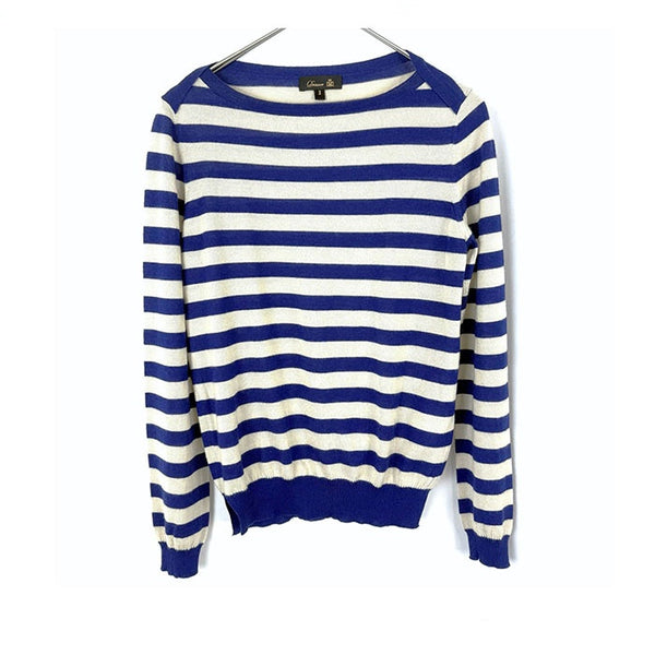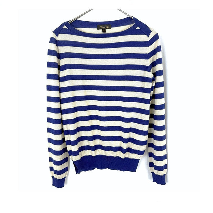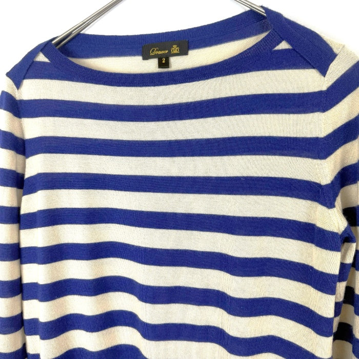 【中古】ドゥロワー Drawer ボーダーニット カシミヤ シルク 薄手 ボートネック ブルー ライトベージュ i0210o00920