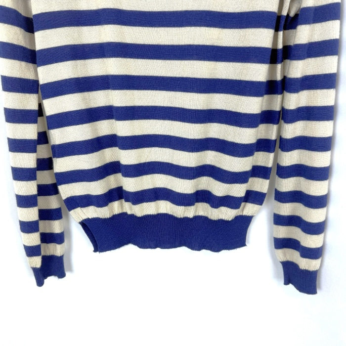 綺麗な色合いのボーダーニットです。カシミヤ×シルクで柔らかで繊細な肌触り。薄手で少し透け感があります。 毛羽立ち少々ありますが、気になる汚れはなく全体的に綺麗なお品物です。