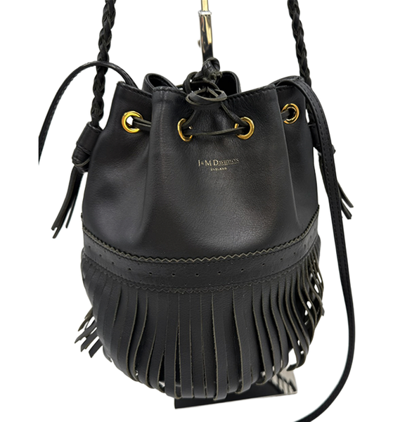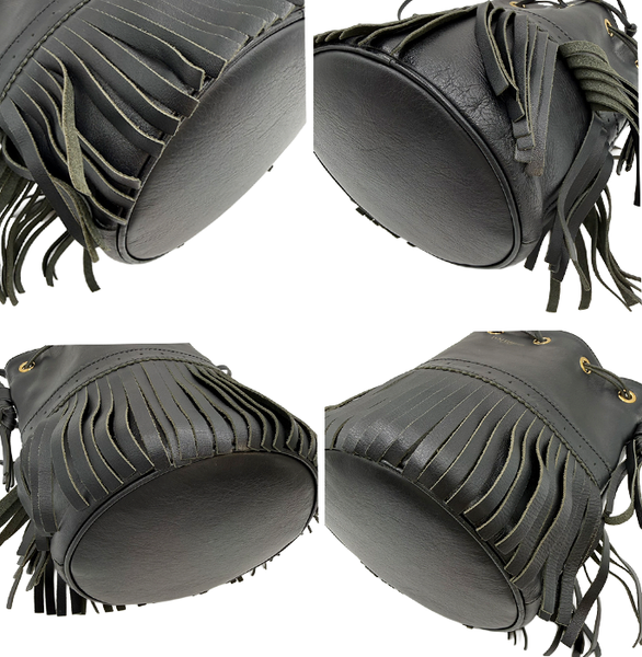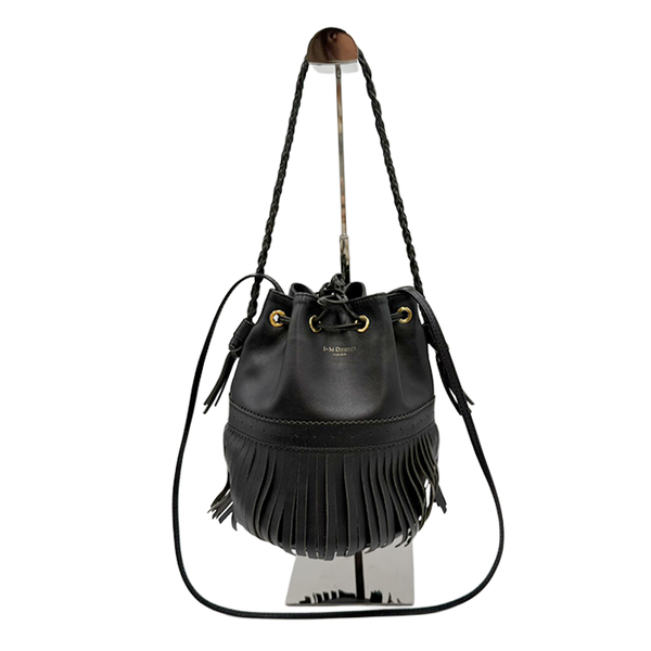 J&M DAVIDSON(ジェイアンドエムデヴィッドソン)の人気モデル「カーニバル」ショルダーバッグ. 動くたびに揺れるフリンジが印象的で、コーディネートの主役になるアイテムです。 上質なレザーとシンプルなブラックカラーで、カジュアルにもきれいめにもマッチ◎ 巾着型で使いやすく、必要な荷物もしっかり収納できます。 内側が使用による黒ずみがございますが、目立つ汚れなくまだまだご使用いただけるお品物です。